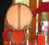Glockenspiel adorned by hand-carved woodwork and mirrors.