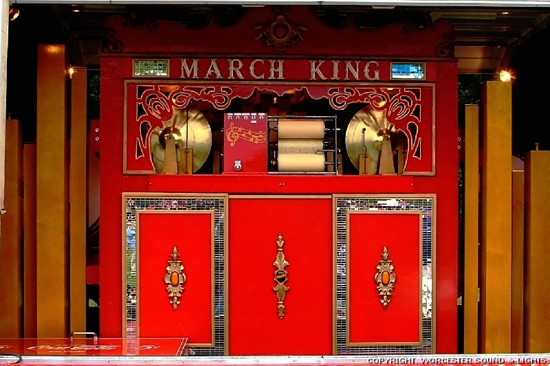 | Rear of the March King, with bass pipes, cymbals, and the original roll system. |