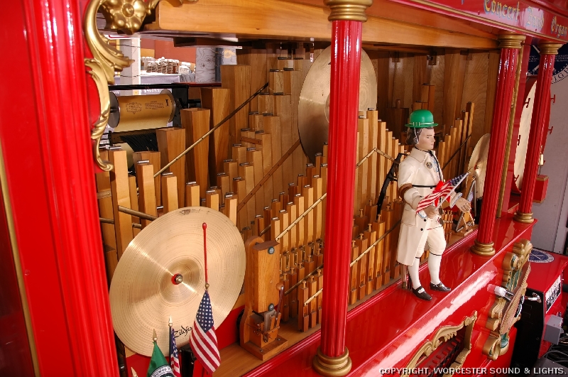 | Hundreds of pipes and real working percussion instruments voice this band organ. |