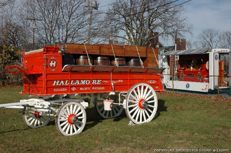 | The famous Hallamore 8-Horse "Clydesdales" Hitch is often seen in parades with our band organs. |